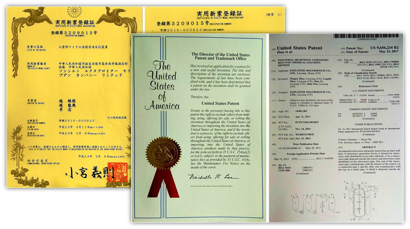 自成立以來(lái),公司完成了高純二硫化鉬產(chǎn)品升級(jí)技術(shù)研發(fā)、納米二硫化鉬制備項(xiàng)目、納米三氧化鉬制備項(xiàng)目、真空分解二硫化鉬生產(chǎn)金屬鉬粉項(xiàng)目、低品位鎢精礦制備鎢鉬鐵合金項(xiàng)目、錸的綜合回收利用項(xiàng)目等一系列重大科研項(xiàng)目,累計(jì)完成科技成果轉(zhuǎn)化20余項(xiàng),先后獲得國(guó)內(nèi)授權(quán)專利30余項(xiàng),其中,發(fā)明專利16項(xiàng),實(shí)用新型專利22項(xiàng);國(guó)外授權(quán)專利2項(xiàng),包括美國(guó)授權(quán)發(fā)明專利1項(xiàng)、日本授權(quán)實(shí)用新型專利1項(xiàng)。部分專利如下: